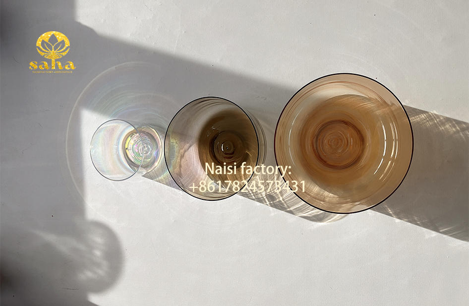 这套水晶钵从左到右分别是透明、透明深棕色和透明浅棕色,虽然这些颜色不像其他颜色那样直接对应于特定的行星,但我们仍然可以从宇宙学和象征学的角度来解释它们: