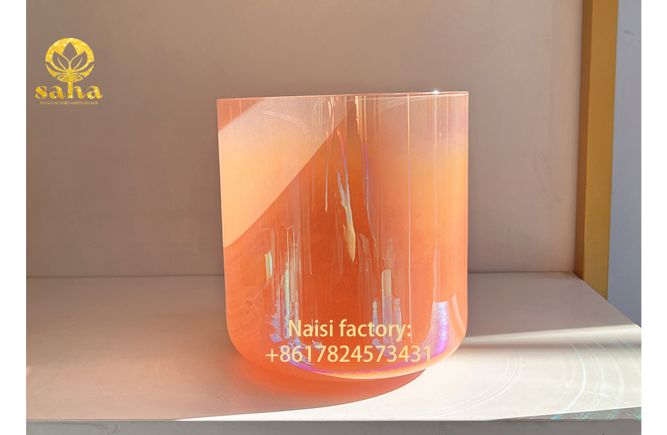 这款水晶钵的颜色是一种柔和的橙色,这种颜色通常与温暖、活力和创造力相关联。橙色是一种非常积极的颜色,能够激发乐观和积极的情绪。