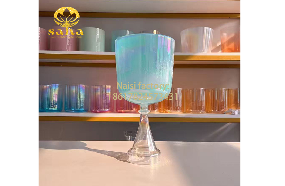 视觉效果:天蓝色的水晶钵在光线的照射下能够展现出柔和而迷人的光泽,而杯体上的石英水晶碎闪则能够反射出微妙的闪光,使得整个水晶钵看起来更加立体和生动。