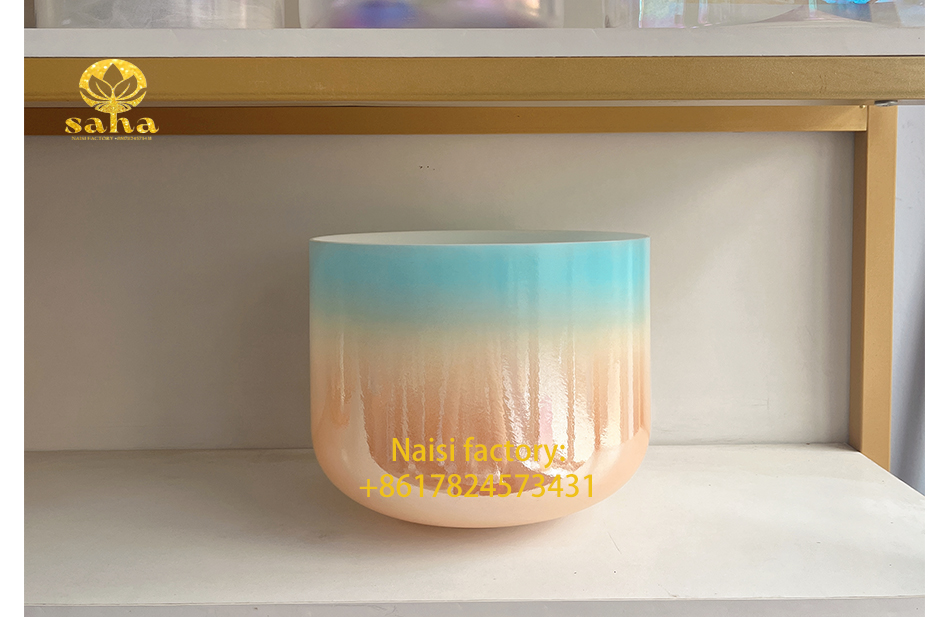 精神体验:在冥想或声音疗法中使用这种颜色和材质的水晶钵,可能有助于提升精神体验。天蓝色有助于平静心灵,而茶金色则可能被认为能够带来温暖和舒适的感觉。