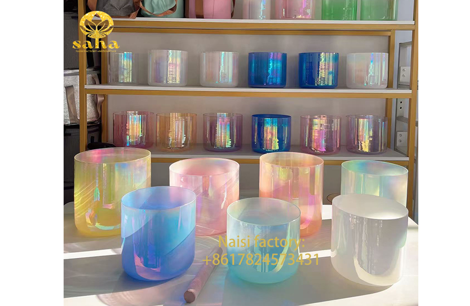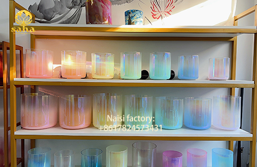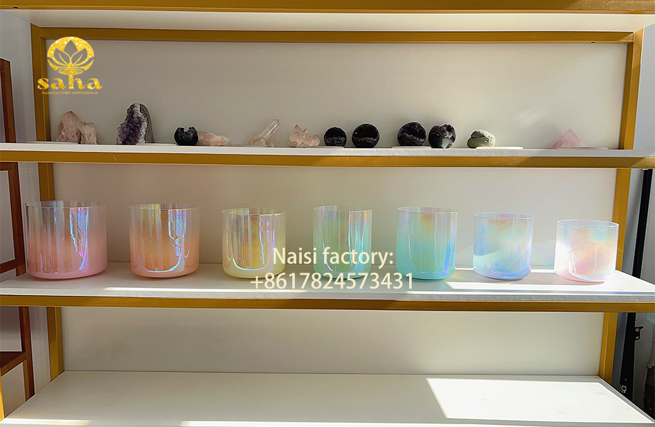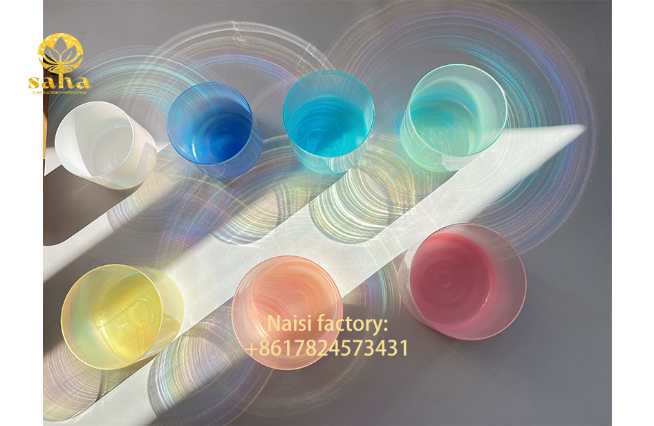 这套水晶钵的颜色渐变设计,从红色到紫色,正好对应了从海底轮到顶轮的颜色变化,可以用于冥想、能量治疗和个人成长。通过敲击或摩擦这些水晶钵,可以产生特定频率的声音,有助于激活和平衡相应的脉轮,促进身心的和谐与健康。