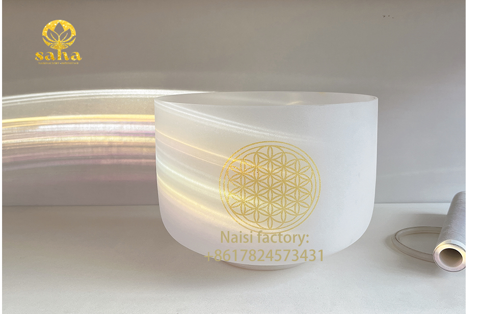 乳白质地与生命之花图案的结合,使得水晶钵在不同光线下展现出不同的视觉效果,增加了其艺术价值和装饰性。