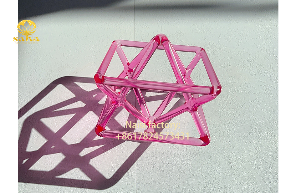 The Merkaba is a geometric shape commonly found in octahedrons, typically formed by two overlapping tetrahedrons. This shape is considered a sacred symbol in many cultures, representing the union of spirit and matter. Translucent pink Merkaba products, combining this sacred geometric shape with a soft color, may have specific uses in sound therapy and spiritual practices.