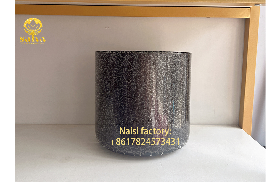 This crackled black crystal bowl is not only suitable as a tool for meditation, yoga, or other spiritual practices, helping people achieve deeper relaxation and introspection, but it can also serve as a home décor, enhancing the beauty and atmosphere of a space. Its design makes it a decorative piece that can add a touch of mystery and modernity to any space.