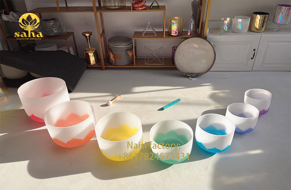 When using this crystal bowl set for healing or meditation, they can help individuals connect to higher levels of consciousness, fostering spiritual growth and self-discovery. The purity and versatility of the white frosted crystal bowls make them invaluable tools in various healing practices. Mixing and matching crystal bowls of different colors and patterns adds diversity and personalization to the healing process.